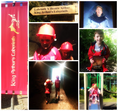 We arrived at King Arthur's Labyrinth just before 1pm. We were booked on to the 1.30 trip so we took a wander round the centre. There are lots of little craft shops to explore - a chocolate shop where you can make your own bar, a wooden toy store and a candle shop where you can dip candles. If you book ahead you can even build a piece of rustic furniture! With little time to play with, the children immediately headed to the adventure playground and worked off some energy.